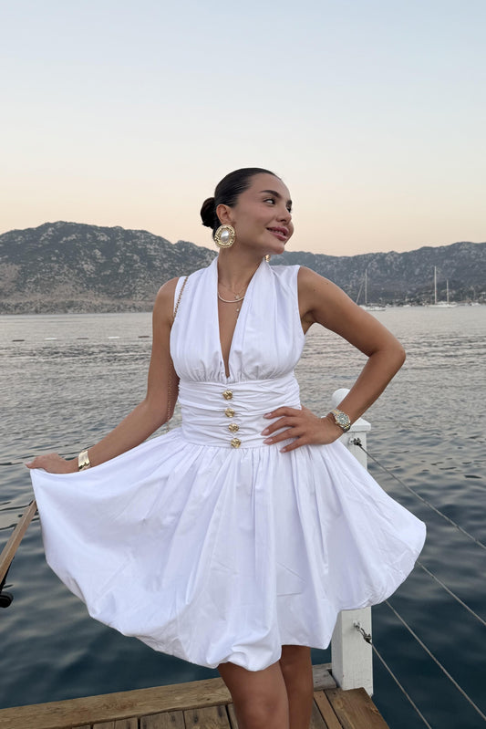 3 AL 2 ÖDEMirelda Beyaz Gold Düğmeli Elbise