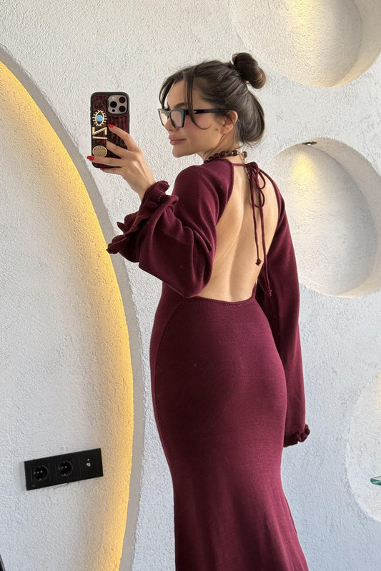 Moana Bordo Sırt Dekolteli Triko Balık Elbise