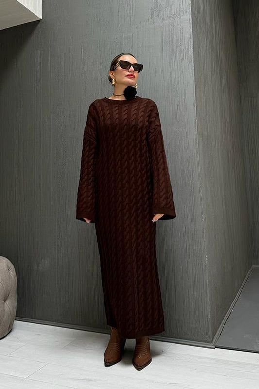 3 AL 2 ÖDEMiu Saç Örgülü Acı Kahve Triko Elbise