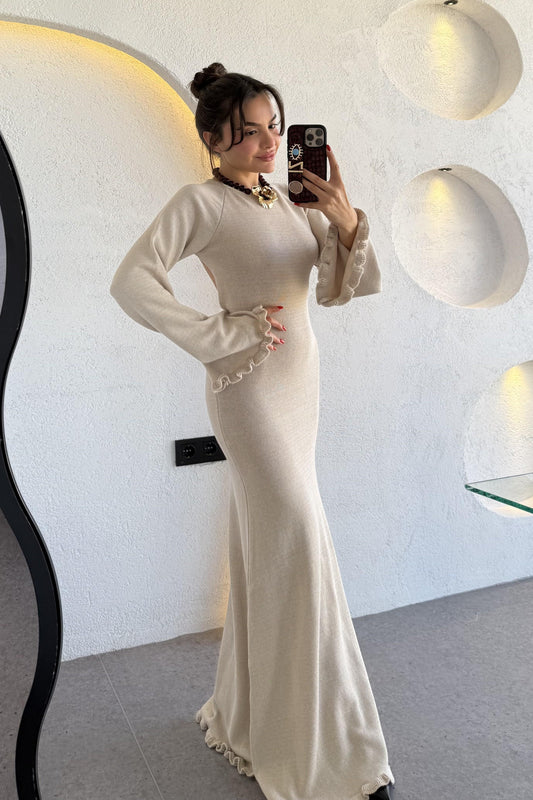 3 AL 2 ÖDEMoana Krem Sırt Dekolteli Triko Balık Elbise