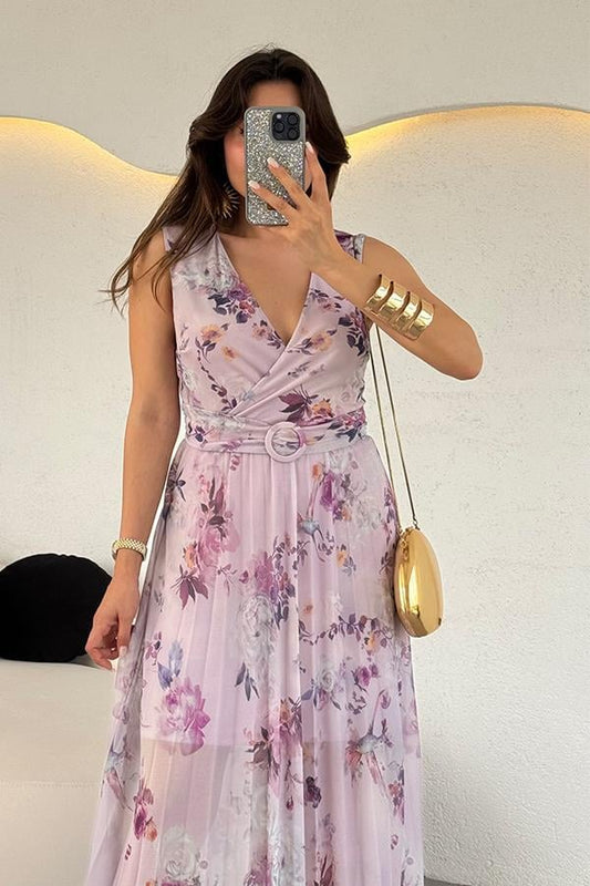 3 AL 2 ÖDEModena Kemer Detaylı Piliseli Çiçekli Elbise