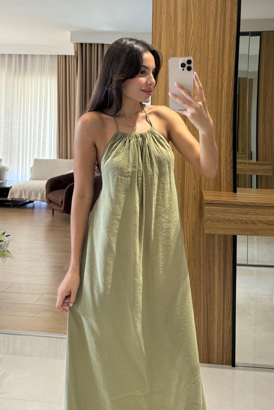 3 AL 2 ÖDEMohan Haki Tensel Sırt Dekolteli Elbise