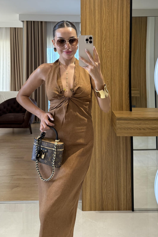 3 AL 2 ÖDEMonaco Tarçın Keten Tokalı Elbise