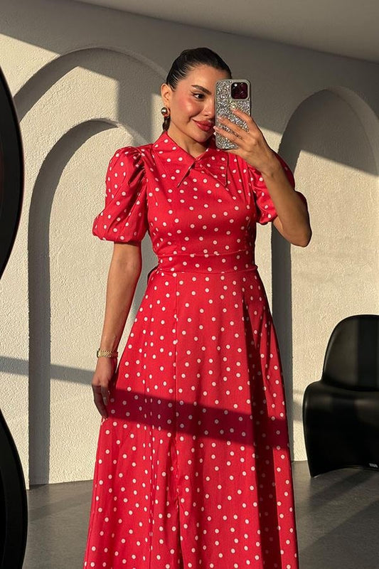 3 AL 2 ÖDE 3 AL 2 ÖDEMontero Puantiyeli Balon Kol Elbise-KırmızıNormal fiyat 749.00TLİndirimli fiyat 749.00TL Normal fiyatBirim fiyat /1,350.00TL44%