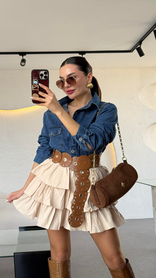 Moroni Krem Belden Oturtmalı Volanlı Mini ElbiseNormal fiyat 699.00TLİndirimli fiyat 699.00TL Normal fiyatBirim fiyat /1,250.00TL44%