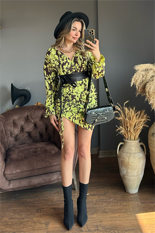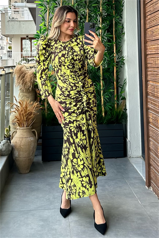 3 AL 2 ÖDENeon sarı çiçek desenli elbise