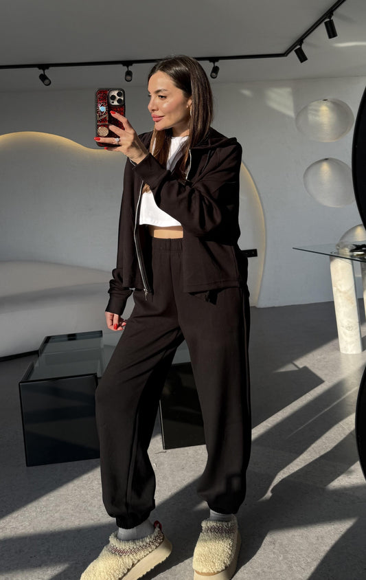 Nice Kahve Fermuarlı Modal Kumaş Eşofman Takımı