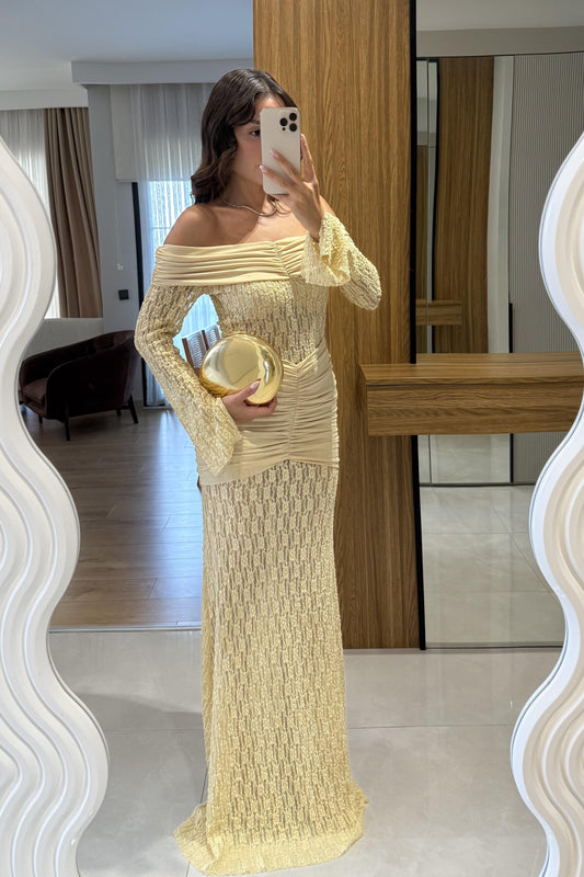 3 AL 2 ÖDENexora Sarı Dantel Madonna Yaka Elbise