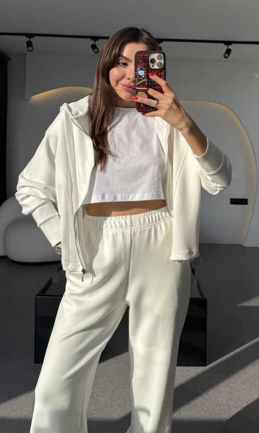 Nice Beyaz Fermuarlı Modal Kumaş Eşofman Takımı