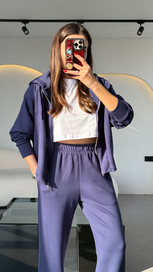 Nice Lacivert Fermuarlı Modal Kumaş Eşofman Takımı
