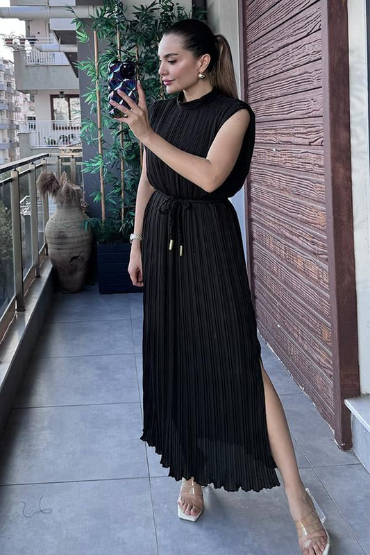 3 AL 2 ÖDENicky Bel Kemerli Piliseli Siyah Elbise