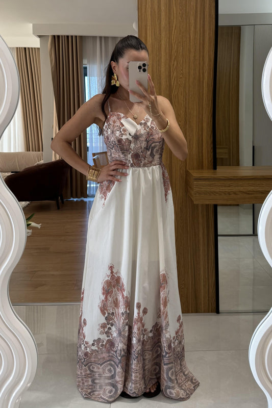 Nivala Etnik Desen Keten Askılı Premium Elbise