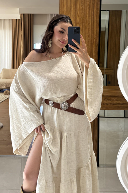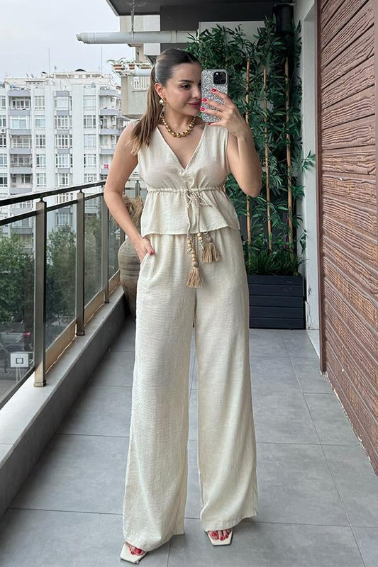 3 AL 2 ÖDENoah Püskül Detaylı Keten Takım - Krem