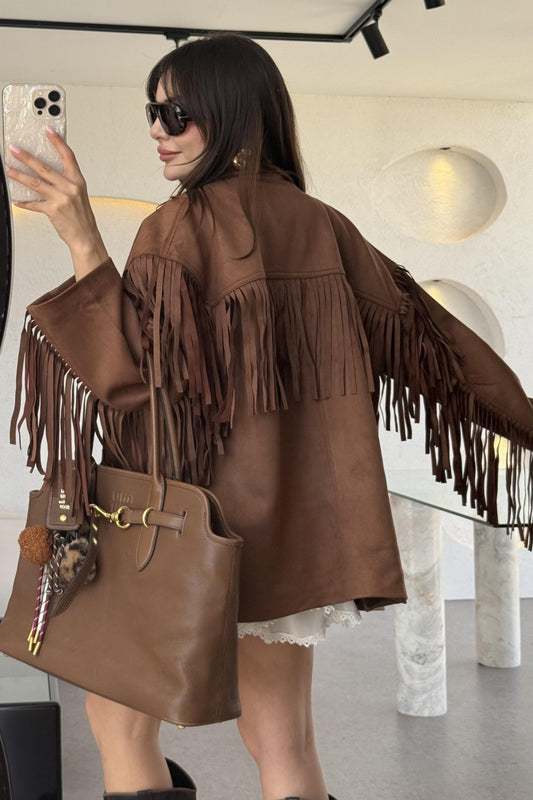 3 AL 2 ÖDENixie Kahve Vintage Püsküllü Süet Ceket