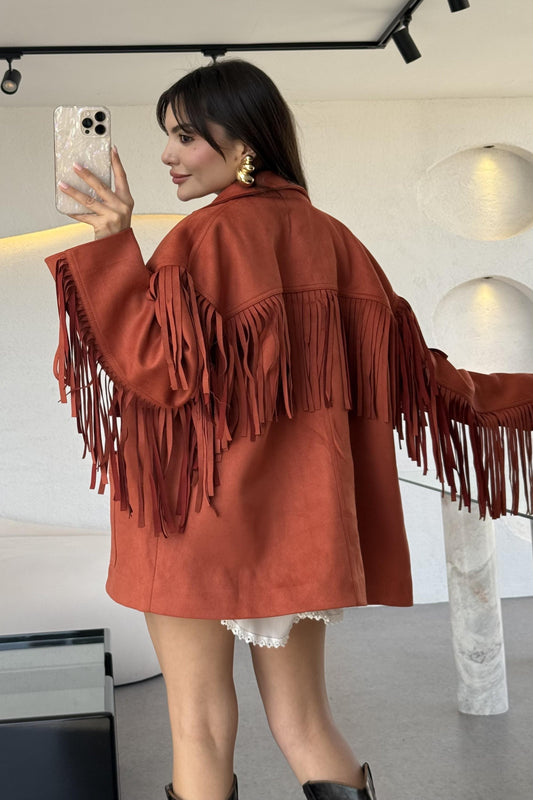 3 AL 2 ÖDENixie Kiremit Vintage Püsküllü Süet Ceket