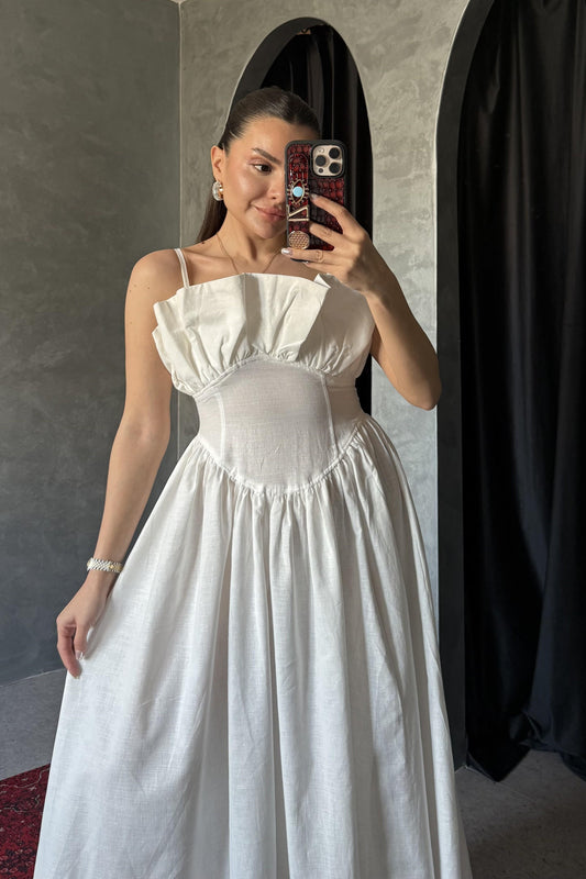 3 AL 2 ÖDENovella Beyaz Askılı Keten Elbise