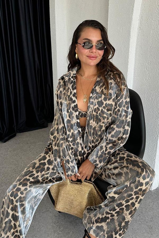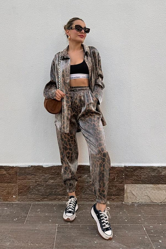 3 AL 2 ÖDENoxi Leopar Desenli Gömlek Pantolon Takım