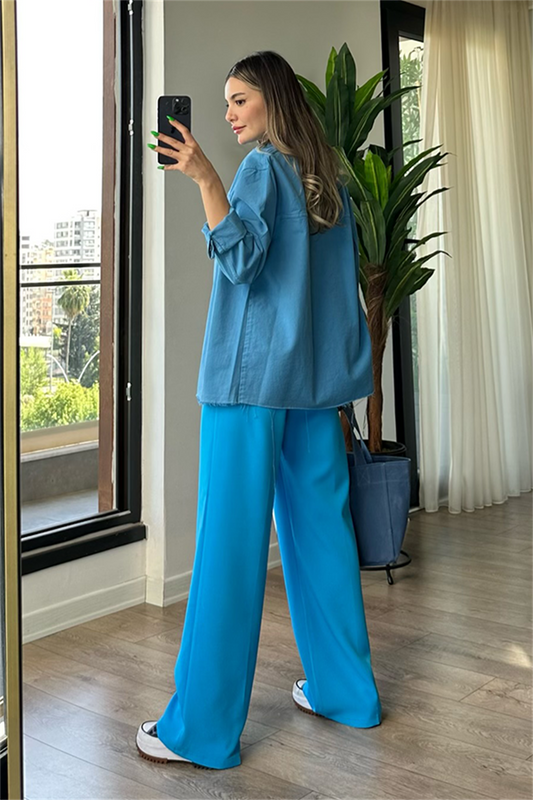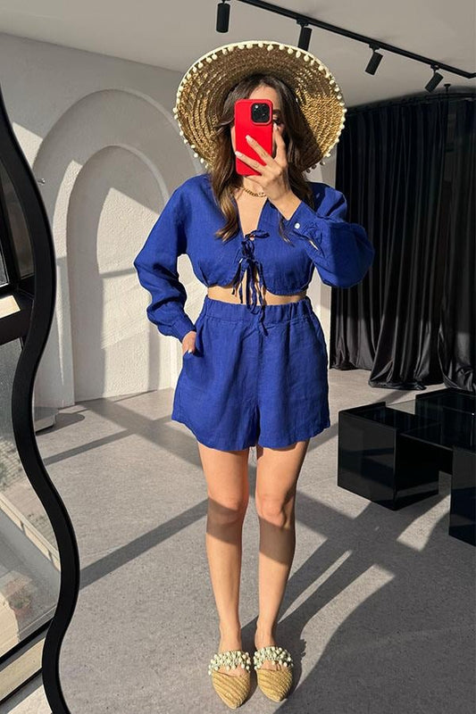 3 AL 2 ÖDEOctavia Keten Crop Şort Takım-Mavi