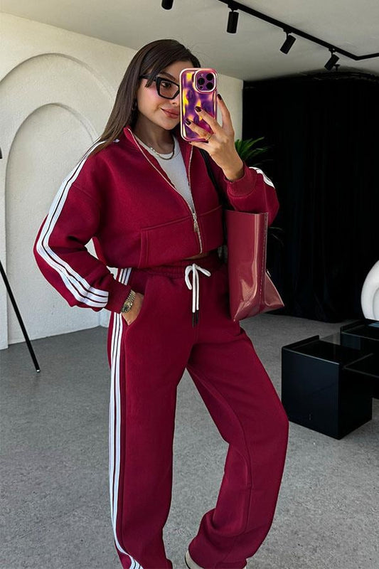 3 AL 2 ÖDEOchoa 3 Çizgili Bordo Eşofman Takım