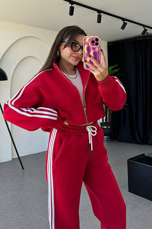 3 AL 2 ÖDEOchoa 3 Çizgili Kırmızı Eşofman Takım