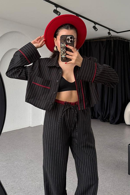 3 AL 2 ÖDEOcie Çizgili Crop Gömlek Takım