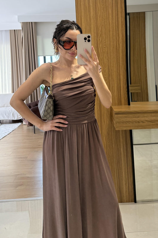3 AL 2 ÖDEOslo Kahve Tek Omuz Modal Elbise