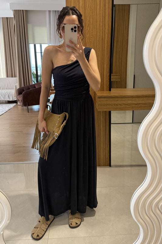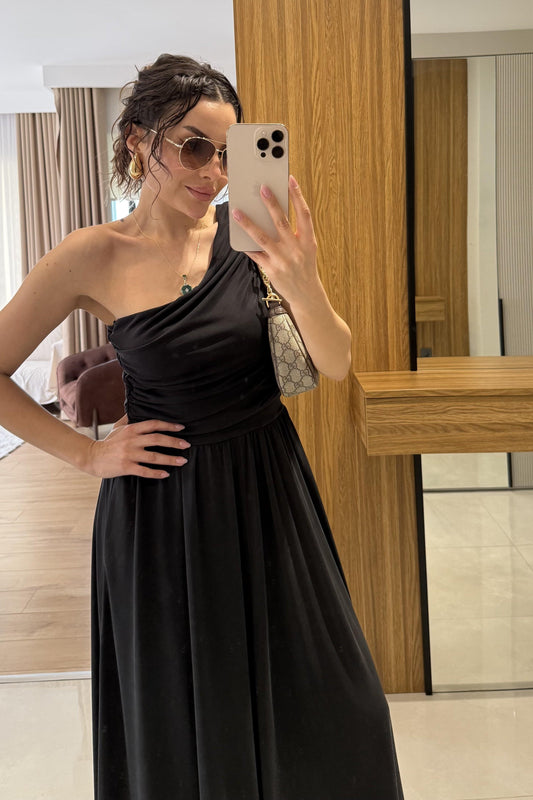3 AL 2 ÖDEOslo Siyah Tek Omuz Modal Elbise