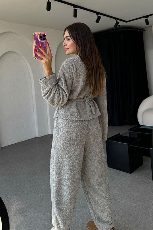 3 AL 2 ÖDEOtis Bağlamalı Dokulu Gri Takım