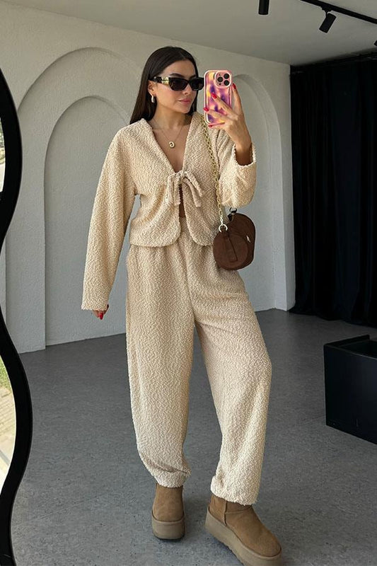 3 AL 2 ÖDEOtis Bağlamalı Dokulu Krem Takım