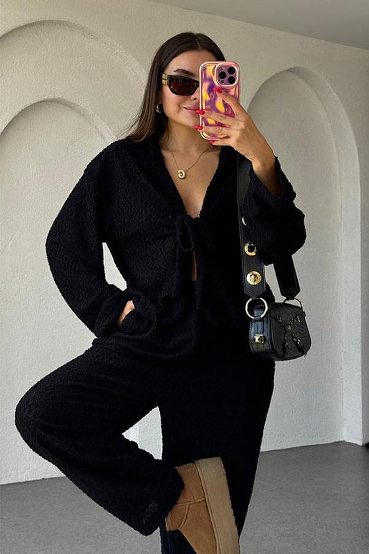 3 AL 2 ÖDEOtis Bağlamalı Dokulu Siyah Takım