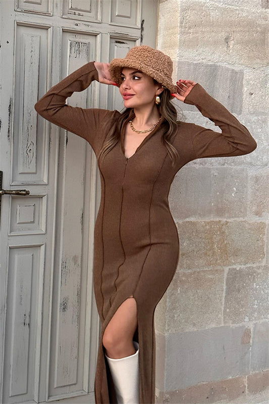 3 AL 2 ÖDEOwen Fermuarlı Uzun Triko Elbise
