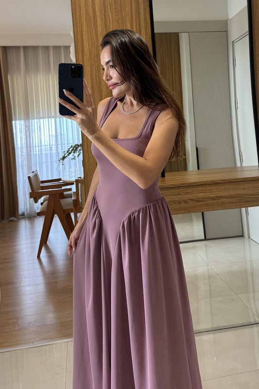 Perast Gül Kurusu Belden Oturtmalı Maxi Modal Elbise
