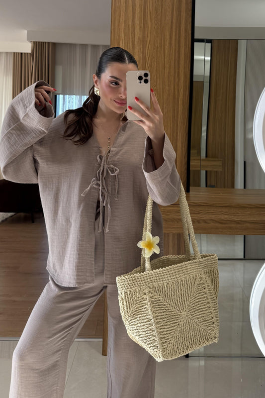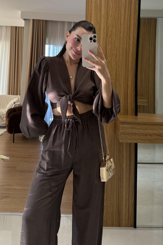 3 AL 2 ÖDEPietro Kahve Bağlamalı Keten Takım