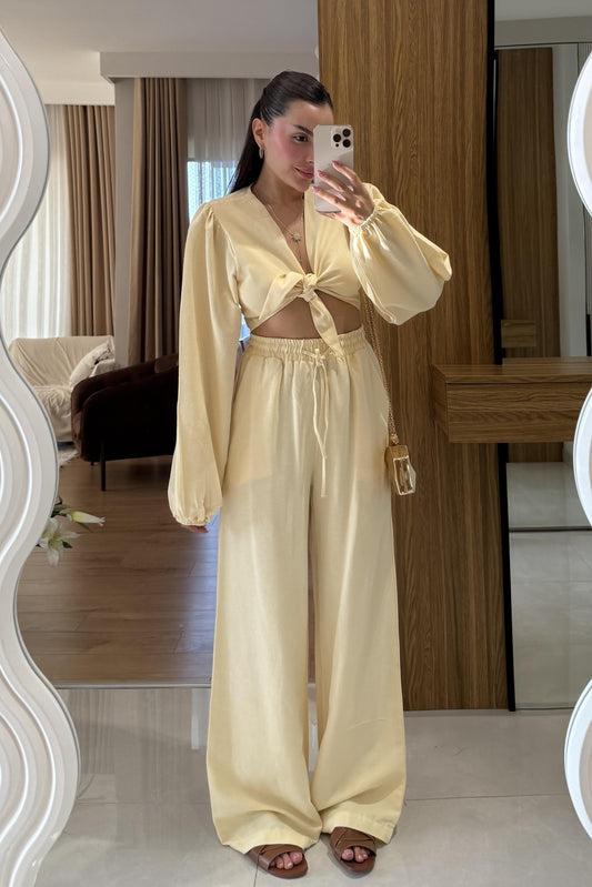 3 AL 2 ÖDEPietro Sarı Bağlamalı Keten Takım