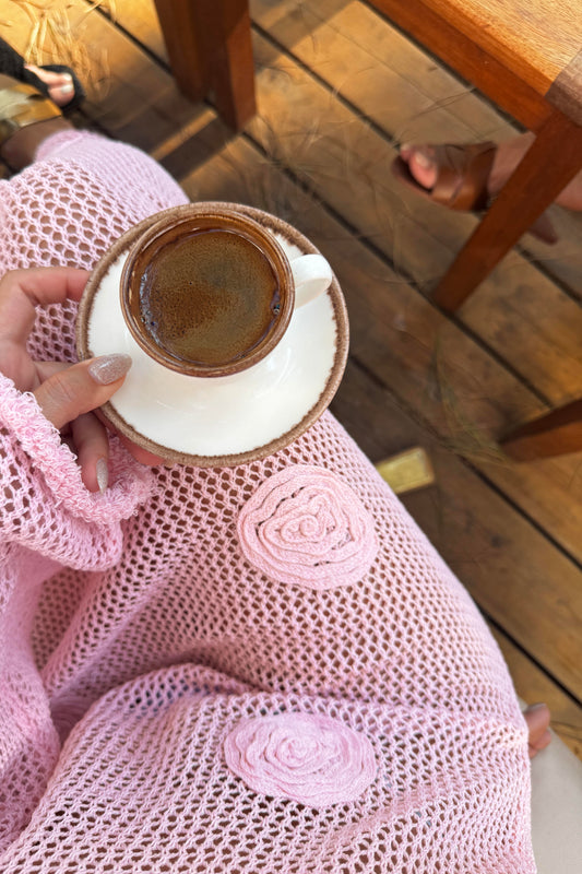3 AL 2 ÖDEPinko Gül Detaylı Ajurlu Plaj Elbisesi