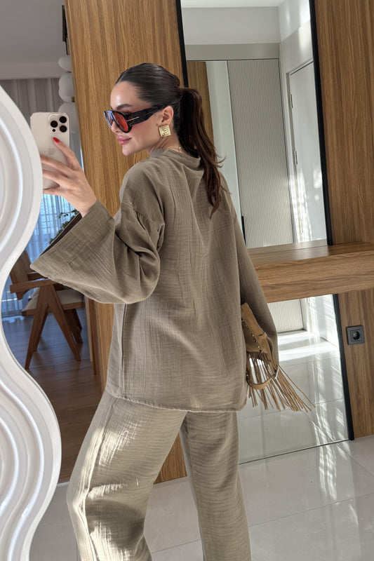 3 AL 2 ÖDEPixre Haki Müslin Bağlamalı Takım