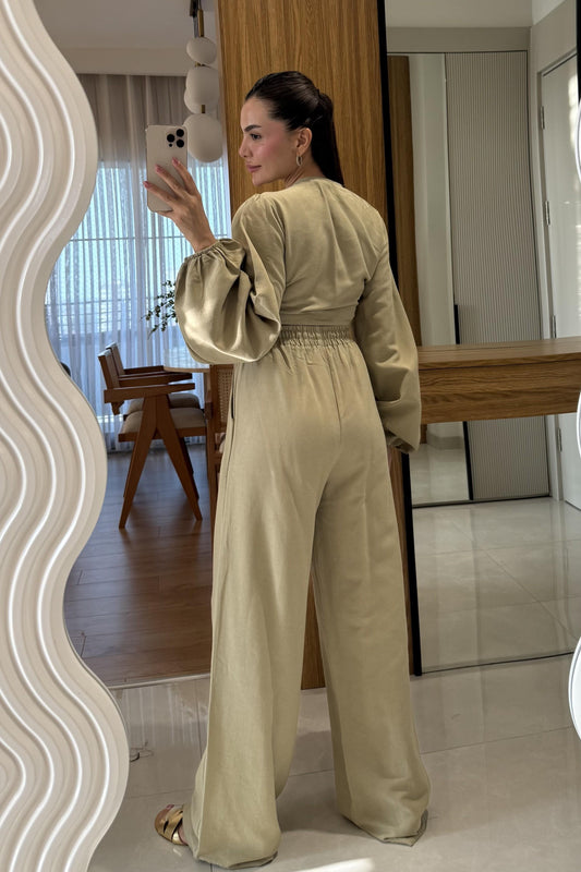 3 AL 2 ÖDEPietro Haki Bağlamalı Keten Takım