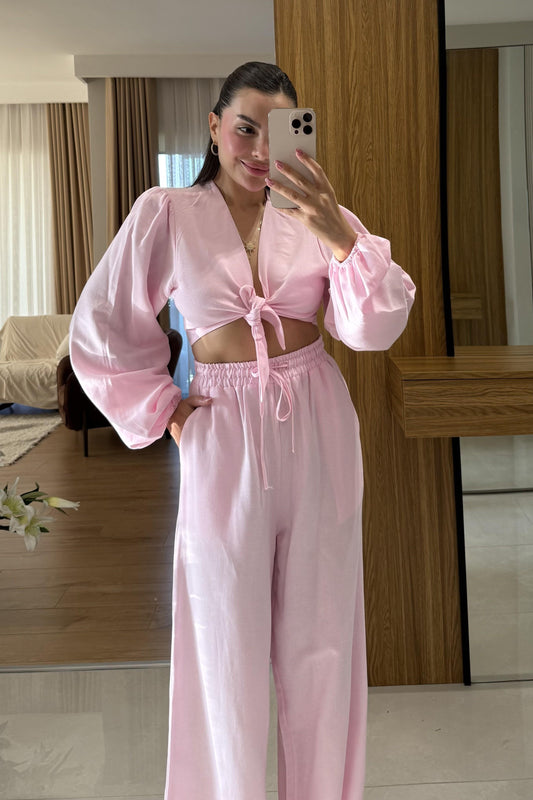 3 AL 2 ÖDEPietro Pembe Bağlamalı Keten Takım