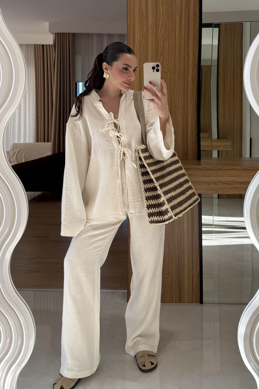 3 AL 2 ÖDEPixre Ekru Müslin Bağlamalı Takım