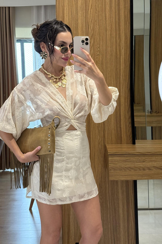 3 AL 2 ÖDERainbow Beyaz Fiyonk Detaylı Mini Elbise