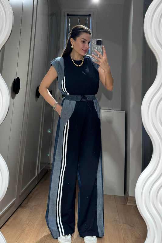 3 AL 2 ÖDERaige Lacivert Kot Karışımlı Şeritli Takım