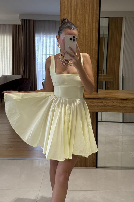 3 AL 2 ÖDERainbow Sarı Fiyonk Detaylı Mini Elbise