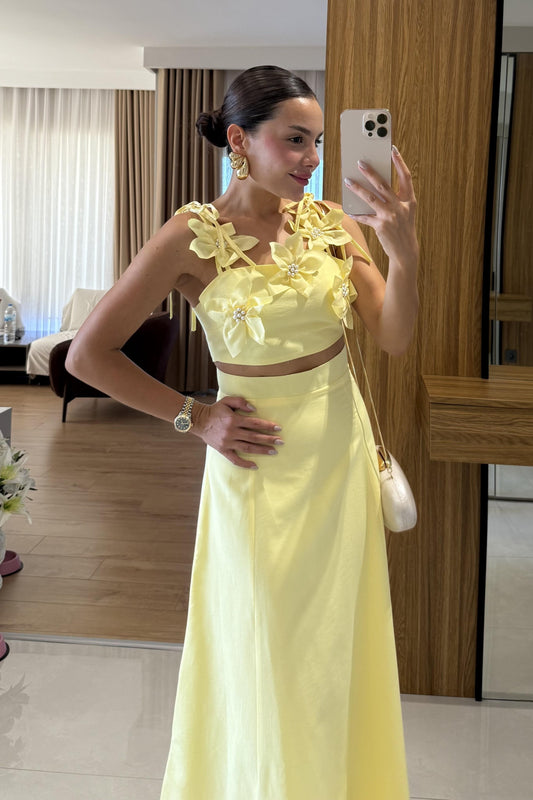 3 AL 2 ÖDERita Sarı Çiçekli Çan Etekli Takım