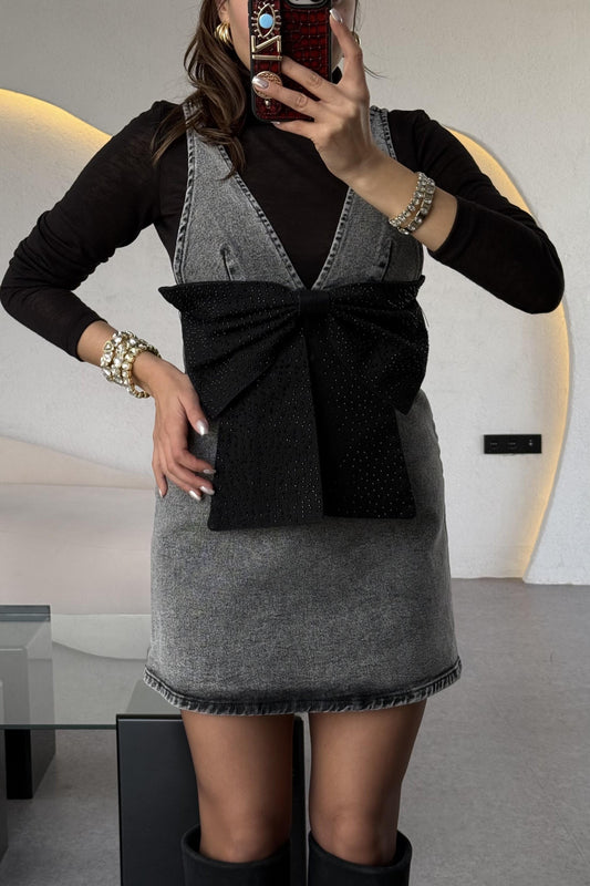 3 AL 2 ÖDESamuel Gri Fiyonk Taşlı Denim Elbise