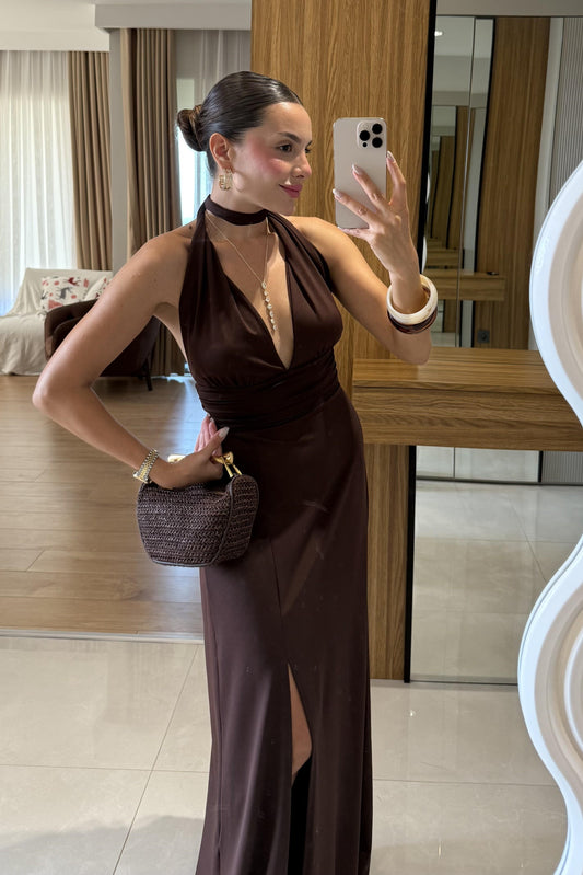 3 AL 2 ÖDESanjose Kahve Boyundan Bağlamalı Elbise