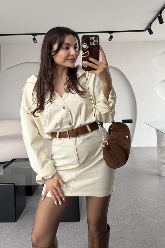 3 AL 2 ÖDESantamaria Kemerli Gabardin Gömlek Elbise