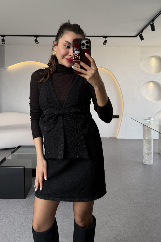 3 AL 2 ÖDESamuel Siyah Fiyonk Taşlı Denim Elbise