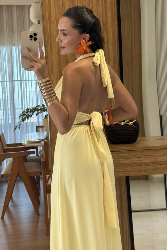 3 AL 2 ÖDESanjose Sarı Boyundan Bağlamalı Elbise