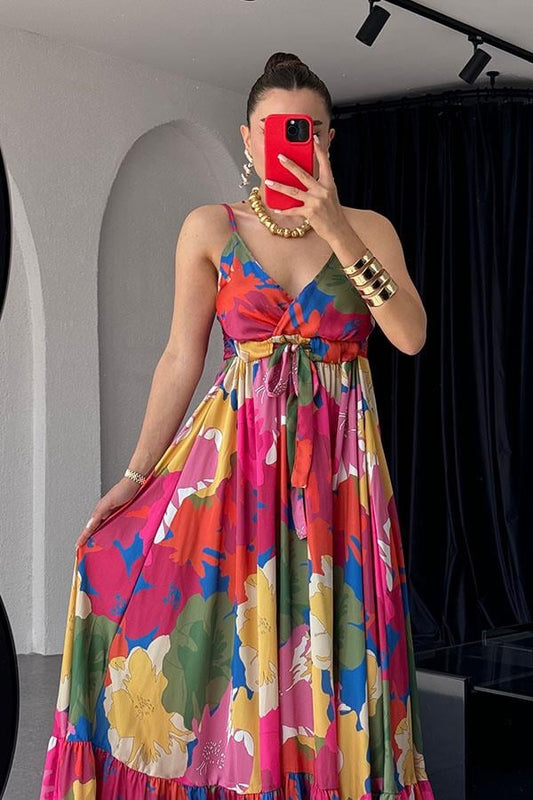 3 AL 2 ÖDESare Renkli Çiçekli Elbise