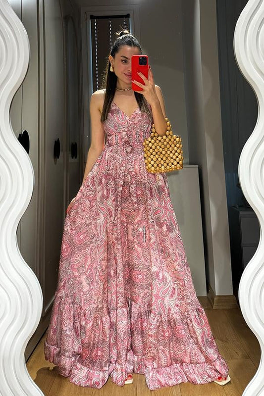 3 AL 2 ÖDESare Desenli Saten Pembe Elbise
